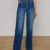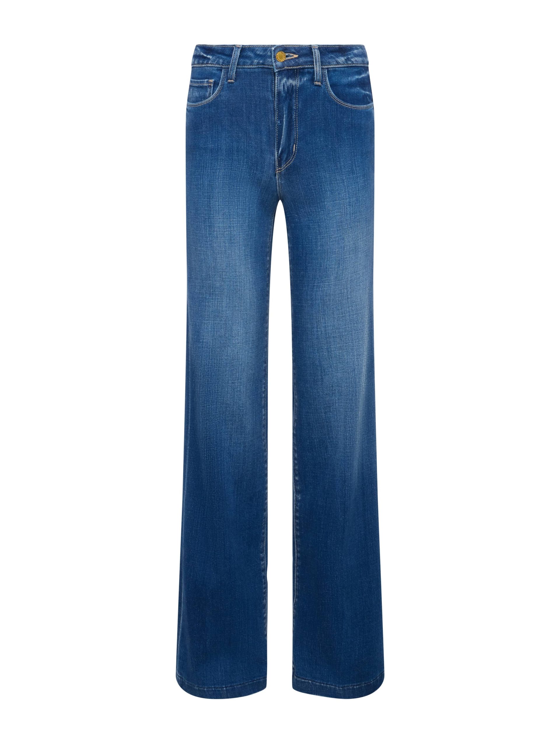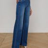 A polished wide-leg jean, fitted and flattering through the hips. Constructed with a contoured waistband that hugs the natural waist without gaping, the Clayton is also our longest inseam wide-leg jean. Now in a deep, classic wash. • Classic stretch denim • High rise • 5-pocket design • Zip fly and button closure