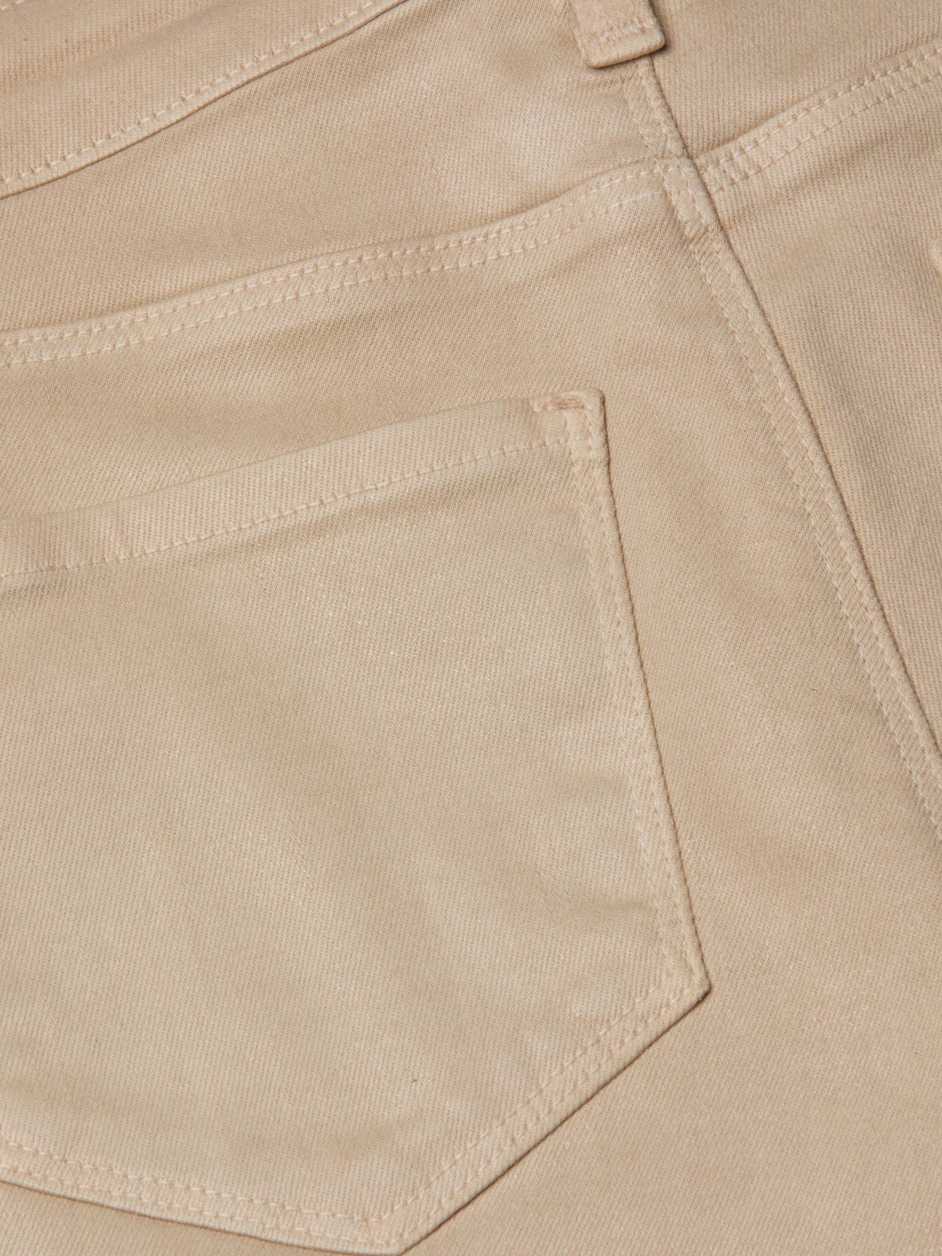 Our cropped kick flare is back in a timeless neutral coated denim. A slim fit from hip to knee finishes in a beautifully proportioned micro bootcut.• Leather-look coated denim• High-rise micro bootcut• Cropped length• Faux front pockets• Functional back pockets• Zip fly and button closure