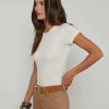 In a soft, supple fabrication and slim cut, Ressi is our most flattering short sleeve tee. This L’AGENCE favorite is back in a vintage white.• Microfiber modal jersey• Slim fit• Crew neck
